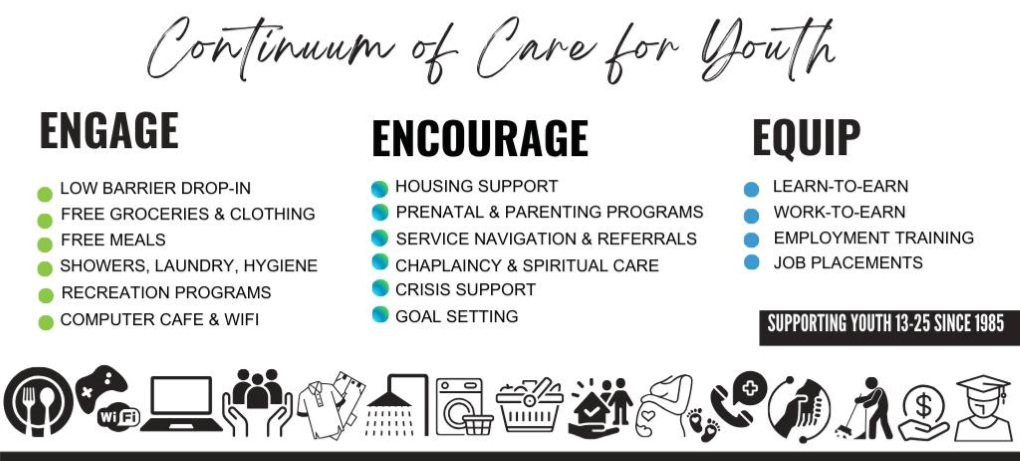 Navigating social systems can be overwhelming, especially when it comes to meeting essential needs like food, education, and shelter. Living Rock Ministries addresses these challenges through a comprehensive range of programs and services, providing a continuum of care. Our initiatives offer youth and their children access to basic necessities, such as food, clothing, and facilities for showers and laundry. In addition, we provide opportunities for personal growth, life skills development, and employment training, helping youth build brighter futures while feeling celebrated and supported along the way.