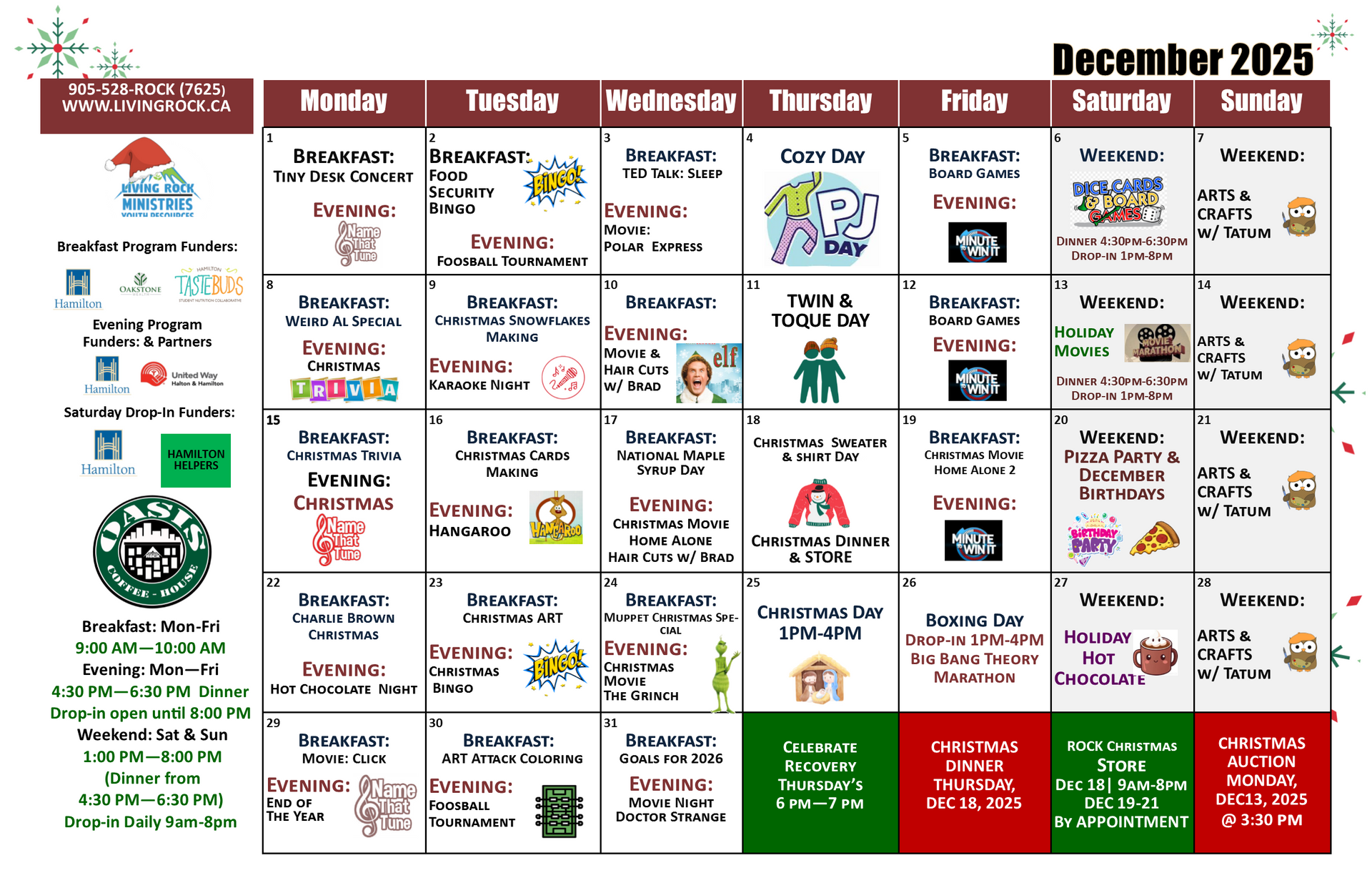 Welcome to The Living Rock Food Bank, home to Stacey's Place, Hamilton's only youth-focused food bank. The food bank is the first point of contact for many youth and their families. As a part of the mission of the food bank, not only are the needs of youth met surrounding food and clothing, connections are also made to other community resources.